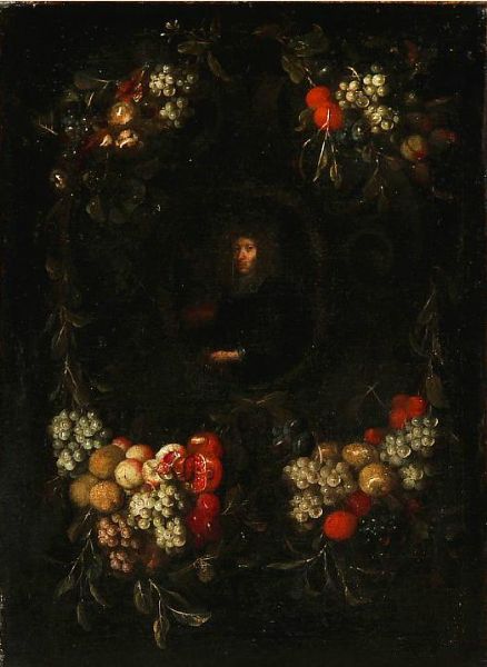Portrait of a nobleman fringed with a garland of fruit.