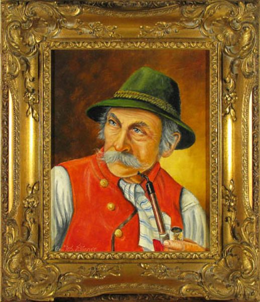 Brustbild eines pfeiferauchenden alpenländischen Bauern