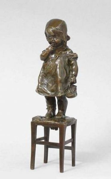 FILLETTE SUR UN TABOURET TENANT SES CHAUSSURES