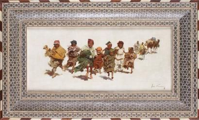 LES ENFANTS COURANT PRÈS DES DROMADAIRES