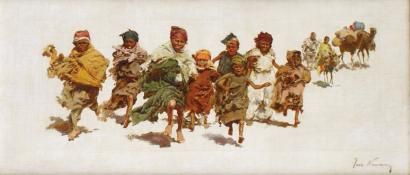 LES ENFANTS COURANT PRÈS DES DROMADAIRES