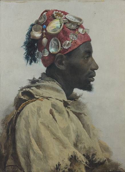 An Arab man wearing a hat decorated with shells