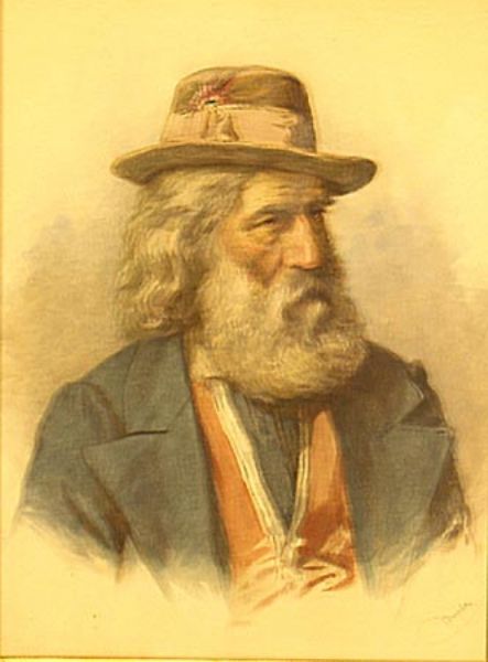 Bärtiger Mann im Halbportrait mit Trikolore am Hut
