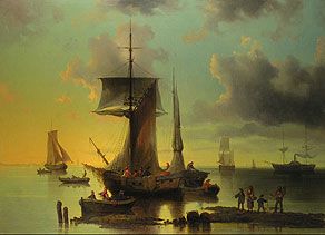 SCHIFFE VOR DER KÜSTE IM ABENDLICHT