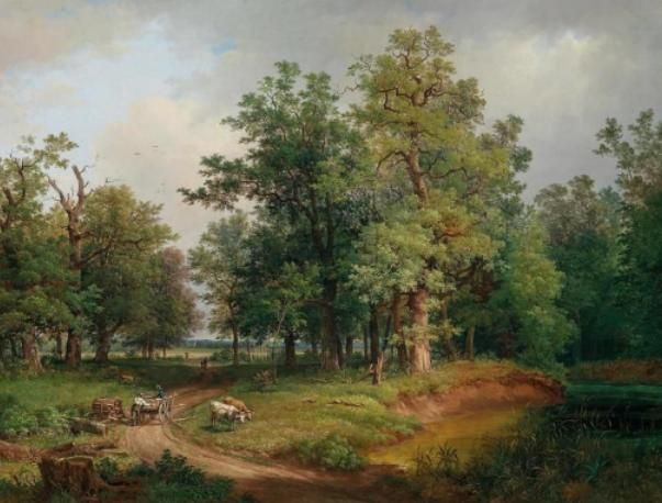 Idyllic Woodland Landscape with Horse and Cart