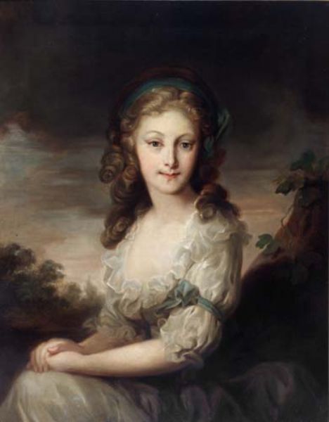Porträt einer feinen Dame vor Landschaftshintergrund