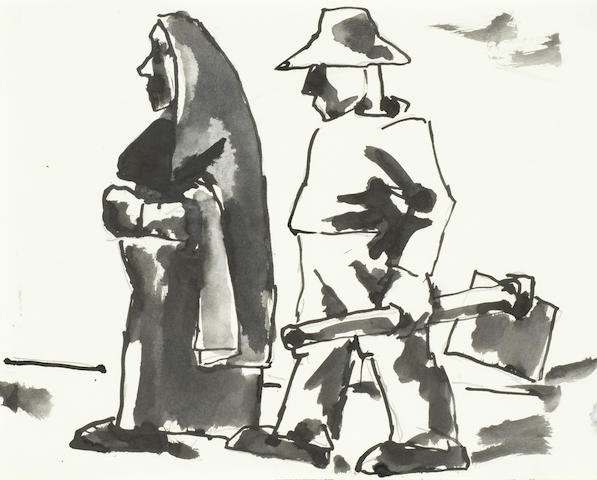 | Going to work Together with 4 further pen and ink sketches by the same hand (all unframed)(5) | |