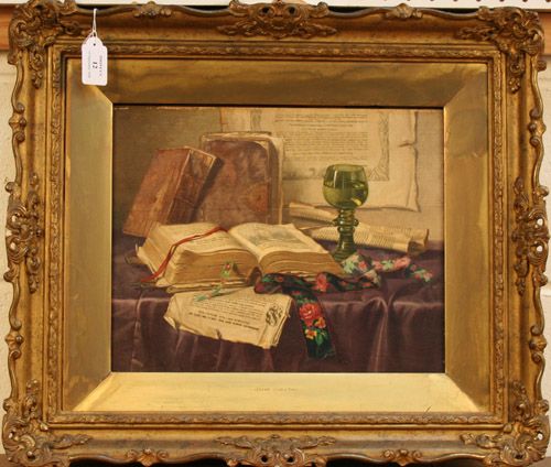 | Still Life Study with Antiquarian Books, Hock Glass and Stole | |