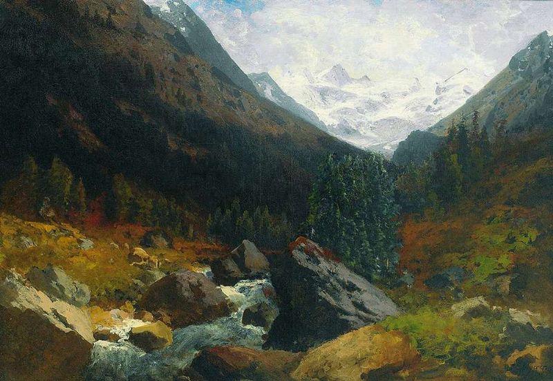 Hochgebirgslandschaft mit Gletschermassiv an einem Sommertag