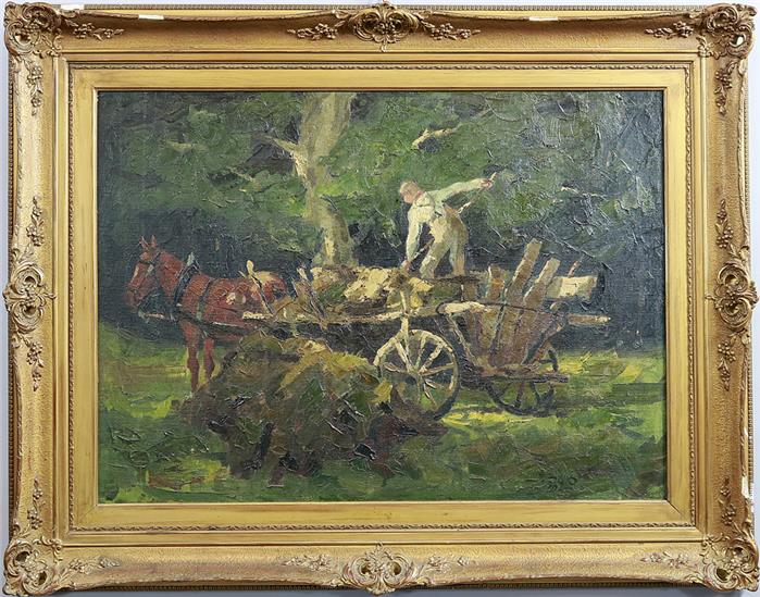 Pferdefuhrwerk am Waldrand