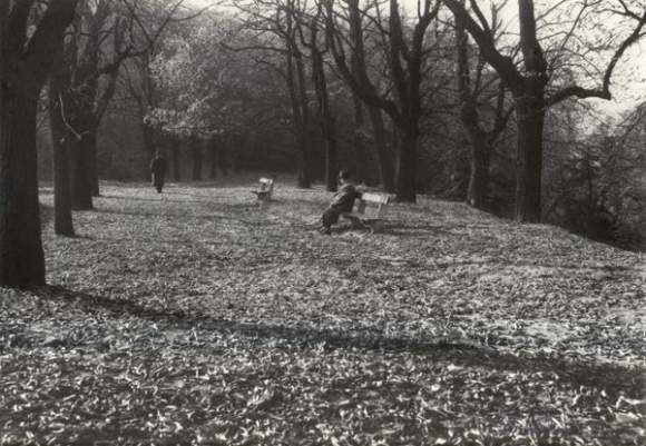 | Sans titre [Femme assise sur un banc et homme se promenant dans un parc] | |