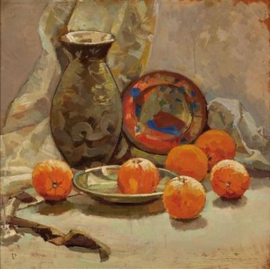 Stillleben mit Orangen, Vase und Schüssel