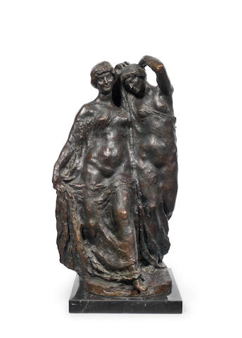 A bronze figure group of two classical maidens