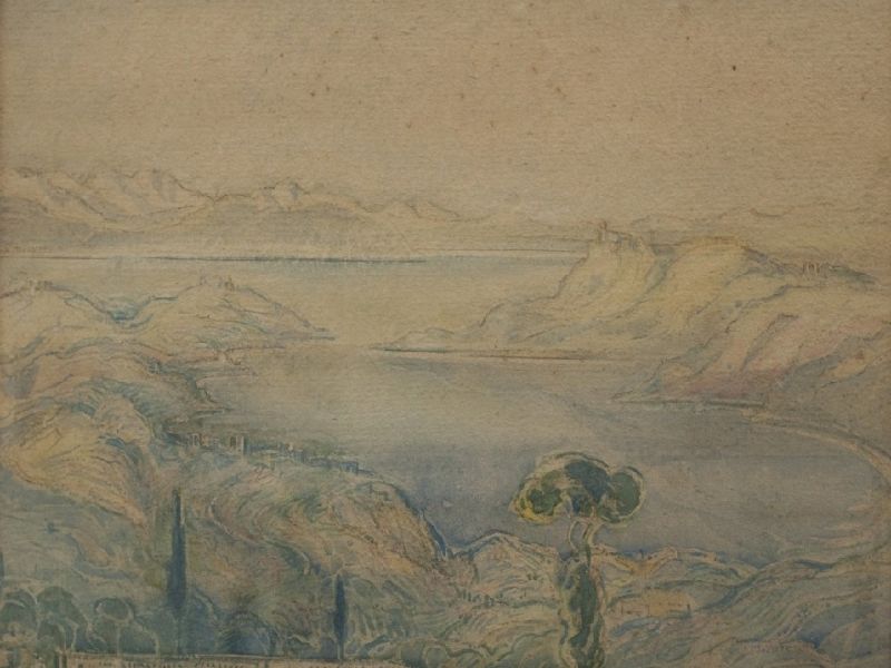 FIGURES IN A GARDEN OVERLOOKING A LAKE
