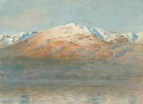 | View of Coniston, 'Old Man' under snow, from Ruskins House and Brantwood, on Coniston Lake | |