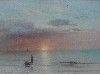 Moored sailing dinghy on a calm sea at sunset