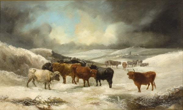 HIGHLAND CATTLE, WINTER VILLAGE BY JOSEPH BARKER
