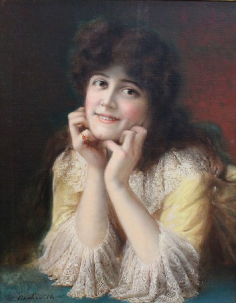 Head and Shoulders Portrait of a Girl wearing a Lace-edged Dress