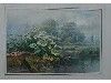 | A River landscape with Kingfisher perched on a wooden jetty by a heavily leafed bank and meadow beyond | |