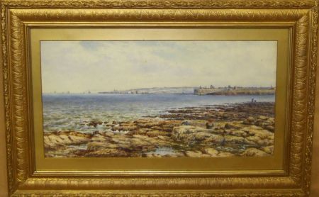 Rocky Coastal View with Mussel Gatherers in Foreground