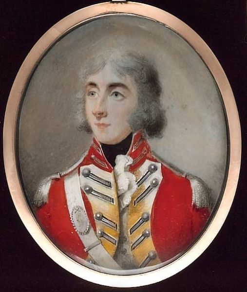 | An Officer called Captain William Cambridge of the Aryshire Fencible Cavalry, wearing scarlet uniform with yellow facings, silve | |