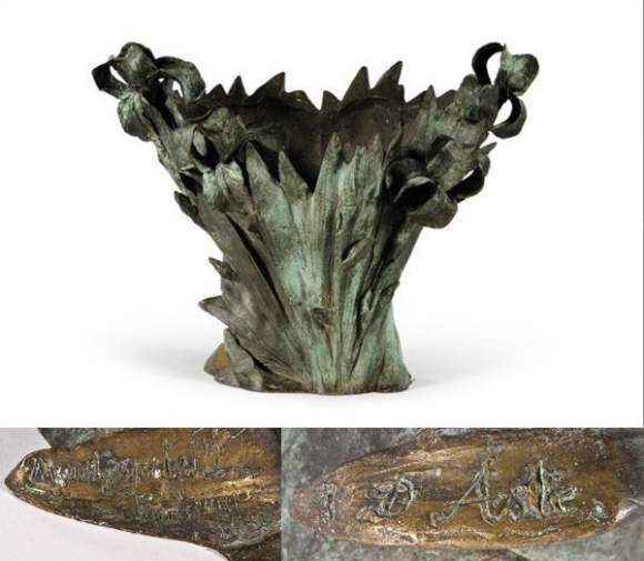Vase formant cache-pot en bronze patiné vert antique à décor de motifs floraux