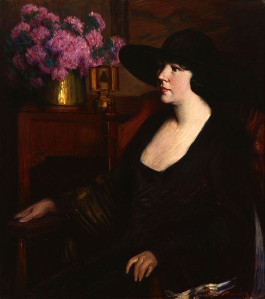 | Portrait of a Woman Seated Near a Floral Still Life | |