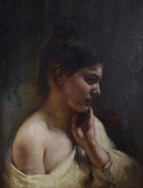 | Study of a young woman, her left hand to her cheek, her right shoulder bare | |