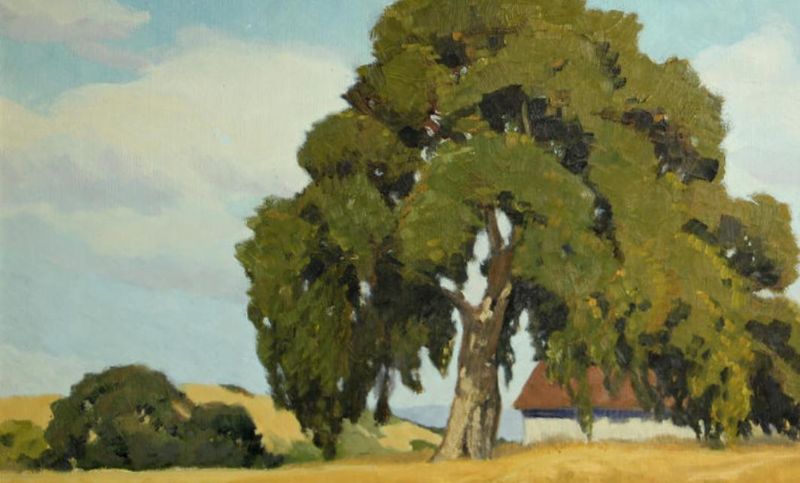 Oak tree by a country home