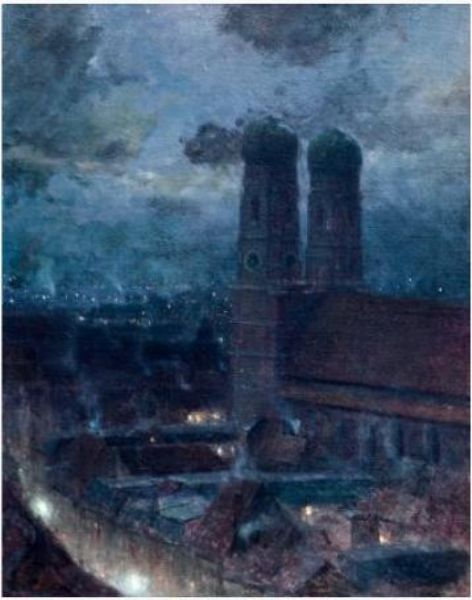 POHLED NA KATEDRÁLU FRAUENKIRCHE V MNICHOVĚ