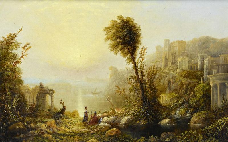 CLASSICAL LANDSCAPE WITH FIGURES AT SUNRISE