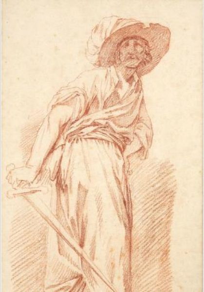 | Homme habillé à l'oriental, coiffé d'un chapeau à plume et tenant une épée | |