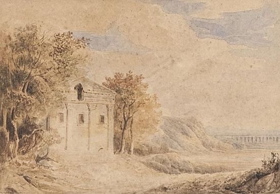 Italianate landscape with classical ruin and aquaduct