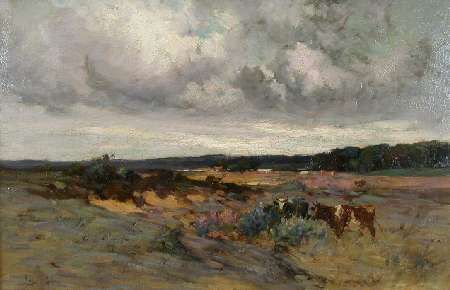 CATTLE GRAZING, STORMY SKIES