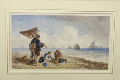 Coastal Scene at Low Tide, with fisher boys in the foreground