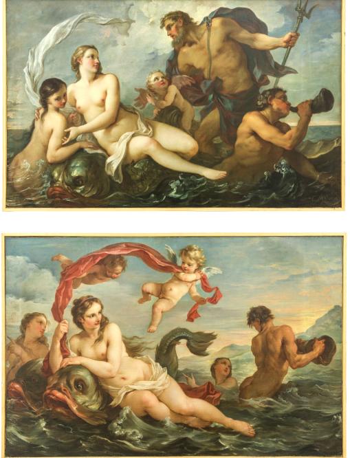 A PAIR OF PAINTINGS WITH NEPTUNE & TRITONS