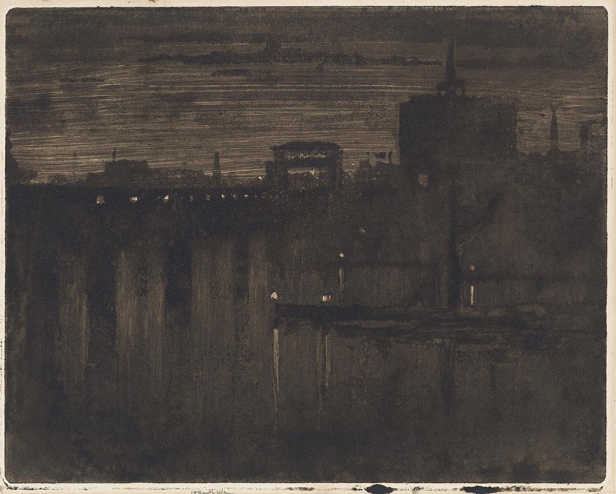 | Aquatint printed in dark brownish black on cream wove paper | |