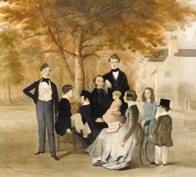 | JOSEPH BARROWS AND HIS CHILDREN IN THE GARDEN OF HANDSWORTH HALL | |