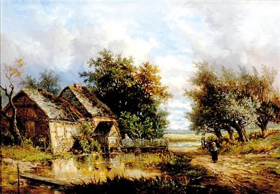 COUNTRY LANDSCAPE WITH FIGURES AND DUCKS