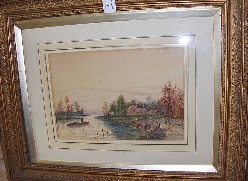 River scene, with figure fishing from a boat,