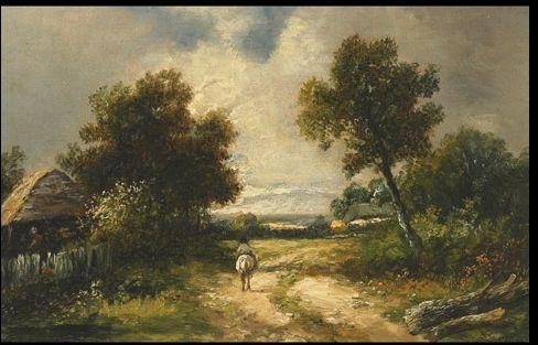 TRAVELLER ON HORSEBACK IN STORMY LANDSCAPE