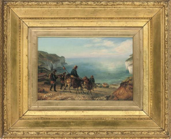 Fishermen on a path overlooking Flamboro' Head, Yorkshire