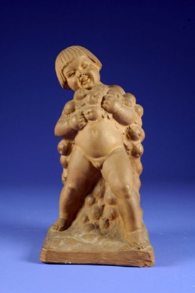 Enfant riant et portant une Guirlande de Fruits.