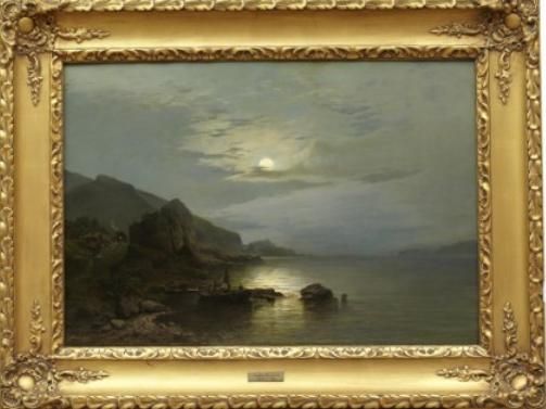 Skärgårdslandskap i månsken