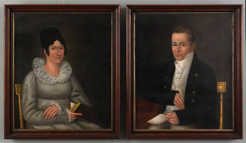 folk portraits of a husband and wife