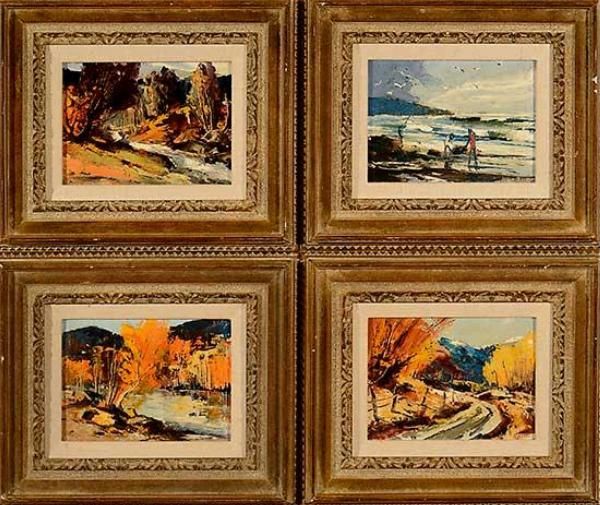 4 works: 3 Fall Mountain Scenes and 1 Seashore with Figures
