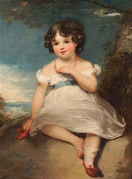 Portrait of a young girl wearing red shoes seated by a tree stump