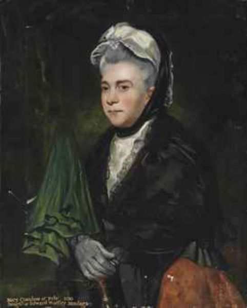 | Portrait of Mary Stuart (1718-1794), Countess of Bute, half-length, with a blue wrap and lace cap, holding an umbrella in her ri | |