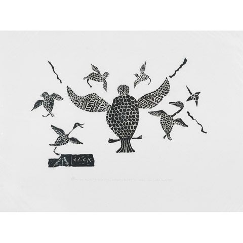 AN OWL BEING TEASED BY YOUNG SNOW GEESE
