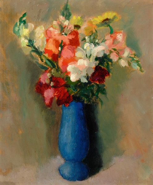 Bloemen in een blauwe vaas
